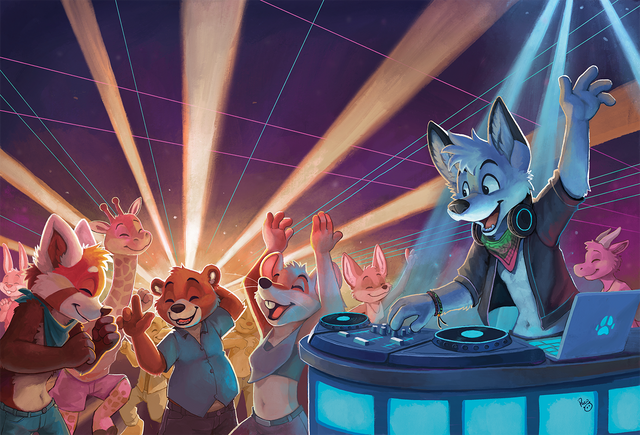 When I had the chance to attend my first furry con, I was not in love with the idea to participate on the nocturnal raves there. But first night at my first Anthrocon, walking with a friend on thursday night, suddenly we were on the big room where it was the rave, it was colorful, many furries and fursuits dancing, having a lot of fun, I was drawn like a magnet insite, and suddenly I was dancing and having a blast.