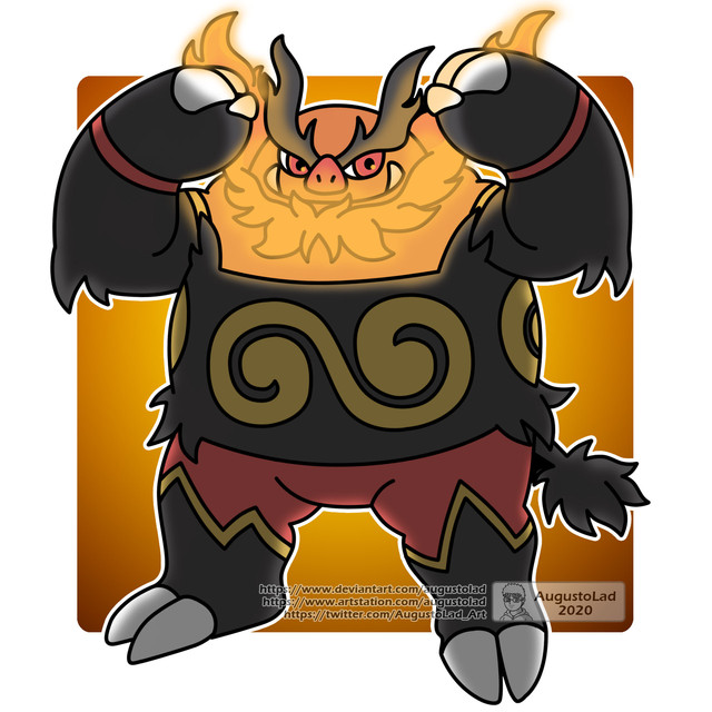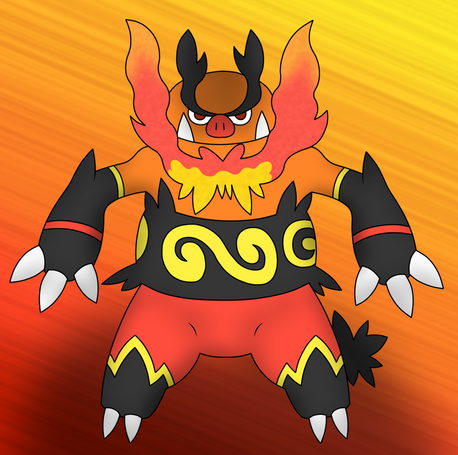 I'm drawing a group picture of my little dysfunctional pokemon family. Here's one of six members, Emboar with a hot temper and short fuse for the members of this dysfunctional family.The whole dysfunctional family: [link]