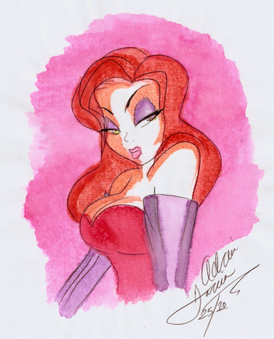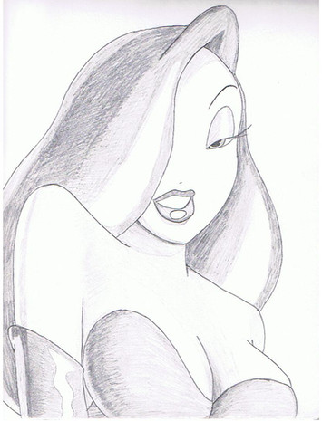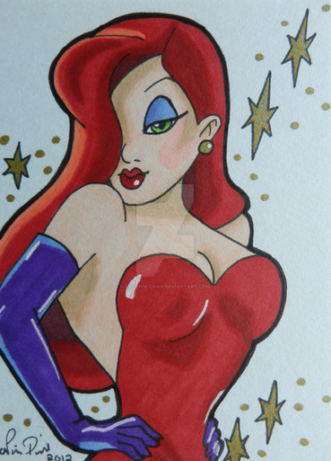 Drawing of Jessica rabbit with sharpie,and penInk and Paint.
