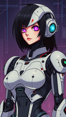 Prompt: 1girl, cyberpunk, (science fiction), ((((robot_joints)))), data stream, android, ai, artificial intelligence, cyborg, mechanical_parts, robot, solo, (official art), fantasy, masterpiece, best quality, (highres), absurdres, 4K, 8K, 16K, beautiful face, beautiful body, symmetrical face, gorgeous, deep eyes, realistic shaded, stunning, intricate, hyper-detailed, highly detailed, sharp, smooth, sharp focus, realistic, anime, mangaWidth: 768