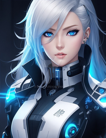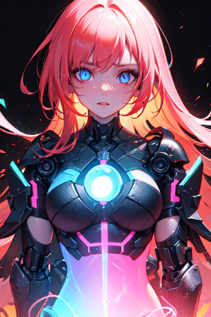 Prompt: 1girl android, ((cyberpunk)), (science fiction), (mechanical_parts), ((((robot_joints)))), data stream, (cyborg), solo, (official art), fantasy, masterpiece, best quality, (highres), absurdres, 4K, 8K, 16K, beautiful face, beautiful body, symmetrical face, gorgeous, deep eyes, realistic shaded, stunning, intricate, hyper-detailed, highly detailed, sharp, smooth, sharp focus, realistic, anime, mangaWidth: 768