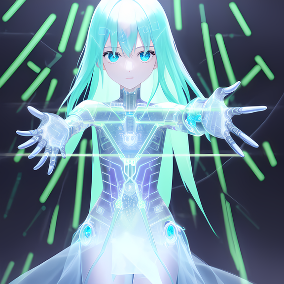 Prompt: 1girl android, ((cyberpunk)), (science fiction), (mechanical_parts), ((((robot_joints)))), data stream, (cyborg), solo, (official art), fantasy, masterpiece, best quality, (highres), absurdres, 4K, 8K, 16K, beautiful face, beautiful body, symmetrical face, gorgeous, deep eyes, realistic shaded, stunning, intricate, hyper-detailed, highly detailed, sharp, smooth, sharp focus, realistic, anime, mangaWidth: 768