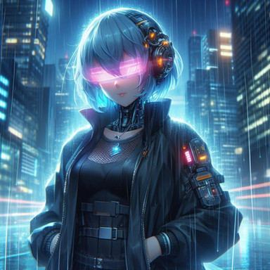 Prompt: portrait of (android) 1girl in cyberpunk city, raining, melancholy, sad, ((mechanical_parts)), (((robot_joints))), (cyborg), (grey_skin), mechanical_eyes, glowing_eyes, (science fiction), solo, colorful, (official art), fantasy, masterpiece, best quality, (highres), absurdres, 4K, 8K, 16K, beautiful face, beautiful body, symmetrical face, gorgeous, deep eyes, realistic shaded, stunning, intricate, hyper-detailed, highly detailed, sharp, smooth, sharp focus, realistic, anime, mangaWidth: 768