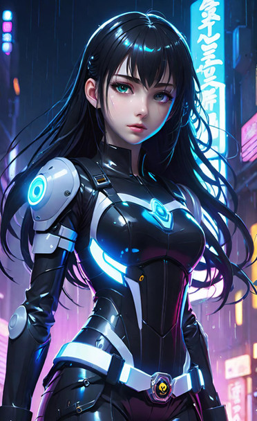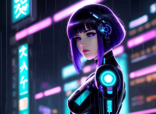 Prompt: portrait of (android) 1girl in cyberpunk city, raining, melancholy, sad, ((mechanical_parts)), (((robot_joints))), (cyborg), (grey_skin), mechanical_eyes, glowing_eyes, (science fiction), solo, colorful, (official art), fantasy, masterpiece, best quality, (highres), absurdres, 4K, 8K, 16K, beautiful face, beautiful body, symmetrical face, gorgeous, deep eyes, realistic shaded, stunning, intricate, hyper-detailed, highly detailed, sharp, smooth, sharp focus, realistic, anime, mangaWidth: 768