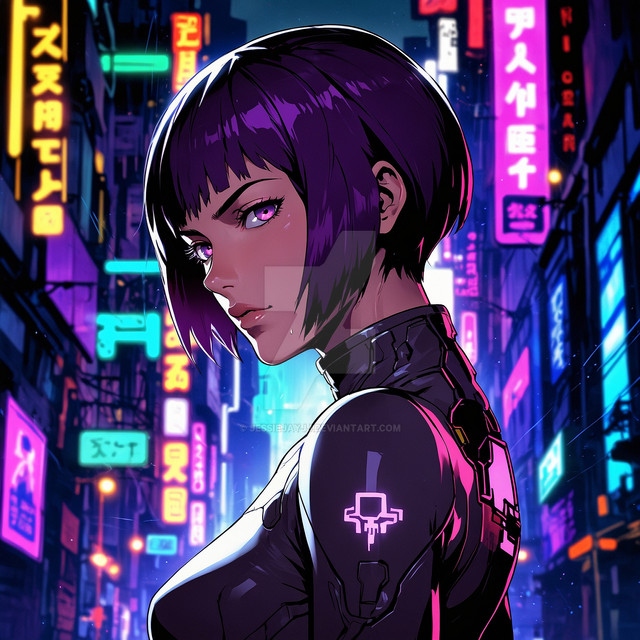 Prompt: robot 1girl, cyberpunk city, street view, crowd, night, android, robot_joints, solo, mechanical_parts, cyborg, colored_skin, grey_skin, mechanical_eye, glowing_eye, masterpiece, highres, absurdres, 4K, 8K, 16K, hyper-detailed, deep eyesNegative Prompt: greyscale, large_breasts, loli, simple_background, cartoon, 3d, heterochromia, ugly, fat, obesity, chubby, deformed, deformity, ugliness, blurry, disfigured, poorly drawn face, mutation, mutated, extra_limb, extra limbs, bad hands, wrong hands, poorly drawn hands, messy drawing, text, cropped head, bad anatomy, two heads, child, kid, gross, mutilated, disgusting, horrible, old, conjoined, lowres, extra digit, fewer digit, worst quality, low quality, jpeg artifacts, watermark, username, artist name, censored, error, missing fingers, cropped, normal quality, signature, b&w, weird colors, bad art, poorly drawn