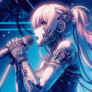 Prompt: idol+, humanoid_robot, stage+, singing, holding_microphone+, robot_joints+, android, solo, crowd, cyborg+, colored_skin, grey_skin, mechanical_eye, glowing_eye, masterpiece, highres+, absurdres, 4K, 8K, 16K, hyper-detailed, deep eyes, stunning, intricate, sharp, smooth, realisticNegative Prompt: greyscale, large_breasts, loli, simple_background, cartoon, 3d, heterochromia, ugly, fat, obesity, chubby, deformed, deformity, ugliness, blurry, disfigured, poorly drawn face, mutation, mutated, extra_limb, extra limbs, bad hands, wrong hands, poorly drawn hands, messy drawing, text, cropped head, bad anatomy, two heads, child, kid, gross, mutilated, disgusting, horrible, old, conjoined, lowres, extra digit, fewer digit, worst quality, low quality, jpeg artifacts, watermark, username, artist name, censored, error, missing fingers, cropped, normal quality, signature, b&w, weird colors, bad art, poorly drawn