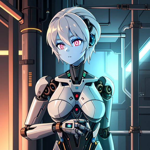 Prompt: 1girl, humanoid_robot+, robot_joints+, clonion solo, android, cyborg+, grey_skin, colored_skin, glowing eyes, destruction, abandoned, building, mechanical eye, masterpiece, highres+, absurdres, 4K, 8K, 16K, hyper-detailed, deep eyes, stunning, intricate, sharp, smooth, realisticNegative Prompt: mecha, gundam, bald, nsfw, greyscale, loli, large_breasts, simple_background, cartoon, 3d, heterochromia, ugly, fat, obesity, chubby, deformed, deformity, ugliness, blurry, disfigured, poorly drawn face, mutation, mutated, extra_limb, extra limbs, bad hands, wrong hands, poorly drawn hands, messy drawing, text, cropped head, bad anatomy, two heads, child, kid, gross, mutilated, disgusting, horrible, old, conjoined, lowres, extra digit, fewer digit, worst quality, low quality, jpeg artifacts, watermark, username, artist name, censored, error, missing fingers, cropped, normal quality, signature, b&w, weird colors, bad art, poorly drawn