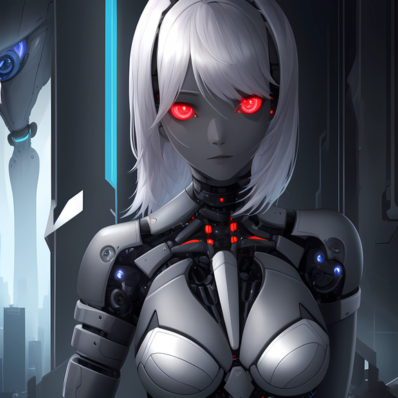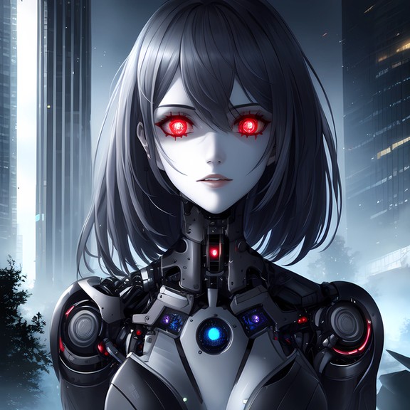 Prompt: 1girl, humanoid_robot+, robot_joints+, solo, android, cyborg+, grey_skin, colored_skin, glowing eyes, destruction, abandoned, building, mechanical eye, masterpiece, highres+, absurdres, 4K, 8K, 16K, hyper-detailed, deep eyes, stunning, intricate, sharp, smooth, realisticNegative Prompt: mecha, gundam, bald, nsfw, greyscale, loli, large_breasts, simple_background, cartoon, 3d, heterochromia, ugly, fat, obesity, chubby, deformed, deformity, ugliness, blurry, disfigured, poorly drawn face, mutation, mutated, extra_limb, extra limbs, bad hands, wrong hands, poorly drawn hands, messy drawing, text, cropped head, bad anatomy, two heads, child, kid, gross, mutilated, disgusting, horrible, old, conjoined, lowres, extra digit, fewer digit, worst quality, low quality, jpeg artifacts, watermark, username, artist name, censored, error, missing fingers, cropped, normal quality, signature, b&w, weird colors, bad art, poorly drawn