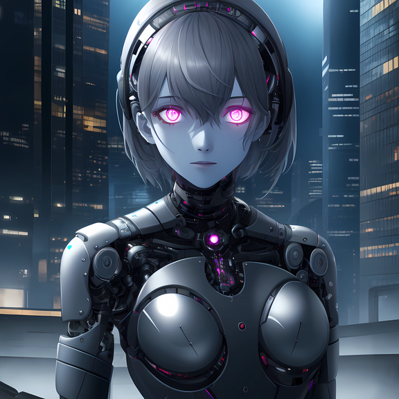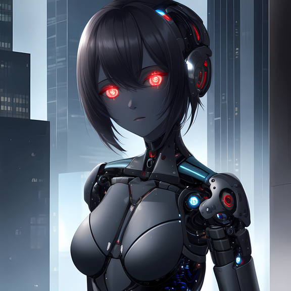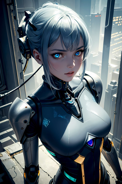 Prompt: 1girl, humanoid_robot+, robot_joints+, solo, android, cyborg+, grey_skin, colored_skin, glowing eyes, destruction, abandoned, building, mechanical eye, masterpiece, highres+, absurdres, 4K, 8K, 16K, hyper-detailed, deep eyes, stunning, intricate, sharp, smooth, realisticNegative Prompt: mecha, gundam, bald, nsfw, greyscale, loli, large_breasts, simple_background, cartoon, 3d, heterochromia, ugly, fat, obesity, chubby, deformed, deformity, ugliness, blurry, disfigured, poorly drawn face, mutation, mutated, extra_limb, extra limbs, bad hands, wrong hands, poorly drawn hands, messy drawing, text, cropped head, bad anatomy, two heads, child, kid, gross, mutilated, disgusting, horrible, old, conjoined, lowres, extra digit, fewer digit, worst quality, low quality, jpeg artifacts, watermark, username, artist name, censored, error, missing fingers, cropped, normal quality, signature, b&w, weird colors, bad art, poorly drawn