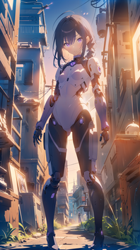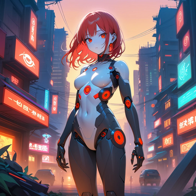 Prompt: 1girl, humanoid_robot+, chmk, robot_joints+, solo, android, cyborg+, pale skin, grey_skin, colored_skin, glowing eyes, outdoors, city, street, mechanical eye, masterpiece, highres+, absurdres, 4K, 8K, 16K, hyper-detailed, deep eyes, stunning, intricate, sharp, smooth, realisticNegative Prompt: mecha, gundam, bald, nsfw, greyscale, loli, large_breasts, simple_background, cartoon, 3d, heterochromia, ugly, fat, obesity, chubby, deformed, deformity, ugliness, blurry, disfigured, poorly drawn face, mutation, mutated, extra_limb, extra limbs, bad hands, wrong hands, poorly drawn hands, messy drawing, text, cropped head, bad anatomy, two heads, child, kid, gross, mutilated, disgusting, horrible, old, conjoined, lowres, extra digit, fewer digit, worst quality, low quality, jpeg artifacts, watermark, username, artist name, censored, error, missing fingers, cropped, normal quality, signature, b&w, weird colors, bad art, poorly drawn