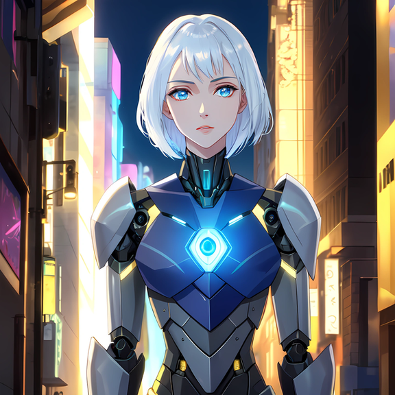 Prompt: 1girl, humanoid_robot+, vox machina style, dragonage style, robot_joints+, solo, android, cyborg+, pale skin, grey_skin, colored_skin, glowing eyes, outdoors, city, street, masterpiece, highres+, absurdres, 4K, 8K, 16K, hyper-detailed, deep eyes, stunning, intricate, sharp, smooth, realisticNegative Prompt: nsfw, greyscale, loli, simple_background, cartoon, 3d, heterochromia, ugly, fat, obesity, chubby, deformed, deformity, ugliness, blurry, disfigured, poorly drawn face, mutation, mutated, extra_limb, extra limbs, bad hands, wrong hands, poorly drawn hands, messy drawing, text, cropped head, bad anatomy, two heads, child, kid, gross, mutilated, disgusting, horrible, old, conjoined, lowres, extra digit, fewer digit, worst quality, low quality, jpeg artifacts, watermark, username, artist name, censored, error, missing fingers, cropped, normal quality, signature, b&w, weird colors, bad art, poorly drawn