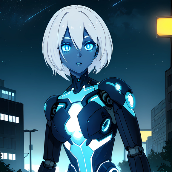 Prompt: humanoid_robot, 1girl, robot_joints+, android, cyborg+, grey_skin, colored_skin, pale skin, solo, outdoors, ruins, lights, city, starry sky, masterpiece, highres+, absurdres, 4K, 8K, 16K, hyper-detailed, deep eyes, stunning, intricate, sharp, smooth, realisticNegative Prompt: gundam, mecha, nsfw, greyscale, loli, simple_background, cartoon, 3d, heterochromia, ugly, fat, obesity, chubby, deformed, deformity, ugliness, blurry, disfigured, poorly drawn face, mutation, mutated, extra_limb, extra limbs, bad hands, wrong hands, poorly drawn hands, messy drawing, text, cropped head, bad anatomy, two heads, child, kid, gross, mutilated, disgusting, horrible, old, conjoined, lowres, extra digit, fewer digit, worst quality, low quality, jpeg artifacts, watermark, username, artist name, censored, error, missing fingers, cropped, normal quality, signature, b&w, weird colors, bad art, poorly drawn