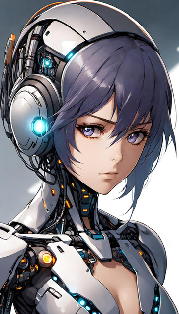 Prompt: 1girl, MB_robot, humanoid robot, robot_joints+, robot, robot girl, solo, android, cyborg+, grey_skin, colored_skin, pale skin, radio_antenna, glowing eyes, masterpiece, highres+, absurdres, 4K, 8K, 16K, hyper-detailed, deep eyes, stunning, intricate, sharp, smooth, realisticNegative Prompt: antenna hair, mecha, gundam, large_breasts, nsfw, greyscale, loli, simple_background, cartoon, 3d, heterochromia, ugly, fat, obesity, chubby, deformed, deformity, ugliness, blurry, disfigured, poorly drawn face, mutation, mutated, extra_limb, extra limbs, bad hands, wrong hands, poorly drawn hands, messy drawing, text, cropped head, bad anatomy, two heads, child, kid, gross, mutilated, disgusting, horrible, old, conjoined, lowres, extra digit, fewer digit, worst quality, low quality, jpeg artifacts, watermark, username, artist name, censored, error, missing fingers, cropped, normal quality, signature, b&w, weird colors, bad art, poorly drawn