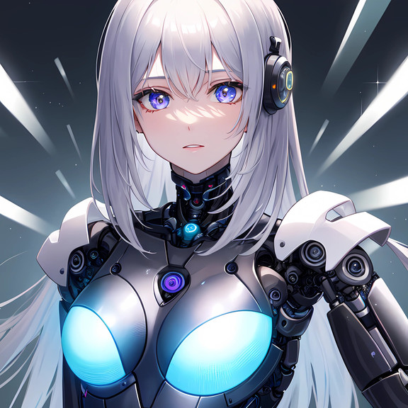 Prompt: 1girl, MB_robot, humanoid robot, robot_joints+, robot, robot girl, solo, android, cyborg+, grey_skin, colored_skin, pale skin, radio_antenna, glowing eyes, masterpiece, highres+, absurdres, 4K, 8K, 16K, hyper-detailed, deep eyes, stunning, intricate, sharp, smooth, realisticNegative Prompt: antenna hair, mecha, gundam, large_breasts, nsfw, greyscale, loli, simple_background, cartoon, 3d, heterochromia, ugly, fat, obesity, chubby, deformed, deformity, ugliness, blurry, disfigured, poorly drawn face, mutation, mutated, extra_limb, extra limbs, bad hands, wrong hands, poorly drawn hands, messy drawing, text, cropped head, bad anatomy, two heads, child, kid, gross, mutilated, disgusting, horrible, old, conjoined, lowres, extra digit, fewer digit, worst quality, low quality, jpeg artifacts, watermark, username, artist name, censored, error, missing fingers, cropped, normal quality, signature, b&w, weird colors, bad art, poorly drawn