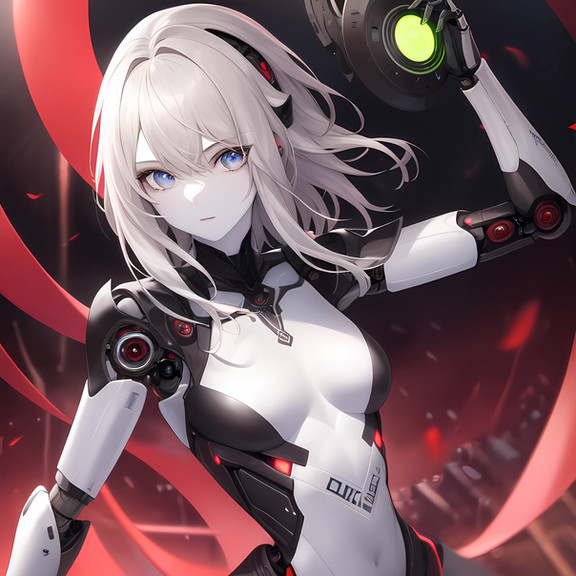 Prompt: 1girl, MB_robot, humanoid robot, robot_joints+, robot, robot girl, solo, android, cyborg+, grey_skin, colored_skin, pale skin, radio_antenna, glowing eyes, masterpiece, highres+, absurdres, 4K, 8K, 16K, hyper-detailed, deep eyes, stunning, intricate, sharp, smooth, realisticNegative Prompt: antenna hair, mecha, gundam, large_breasts, nsfw, greyscale, loli, simple_background, cartoon, 3d, heterochromia, ugly, fat, obesity, chubby, deformed, deformity, ugliness, blurry, disfigured, poorly drawn face, mutation, mutated, extra_limb, extra limbs, bad hands, wrong hands, poorly drawn hands, messy drawing, text, cropped head, bad anatomy, two heads, child, kid, gross, mutilated, disgusting, horrible, old, conjoined, lowres, extra digit, fewer digit, worst quality, low quality, jpeg artifacts, watermark, username, artist name, censored, error, missing fingers, cropped, normal quality, signature, b&w, weird colors, bad art, poorly drawn