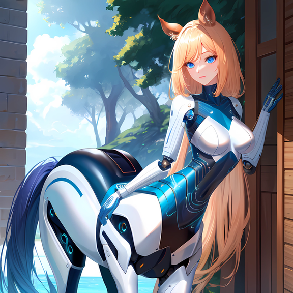 Prompt: taur, centaur, portrait, android, 1girl, robot_joints, cyborg, humanoid_robot, solo, outdoors, masterpiece, highres, absurdres, 4K, 8K, 16K, hyper-detailed, deep eyes, extremely detailed,Negative prompt: mecha, gundam, greyscale, nsfw, loli, (worst quality, low quality:1.4), easynegative, bad-artist-anime, ugly, fat, obesity, chubby, deformed, deformity, ugliness, blurry, disfigured, mutation, mutated, bad, messy, text, cropped, child, kid, gross, mutilated, disgusting, horrible, old, conjoined, lowres, jpeg artifacts, watermark, username, name, censored, error, missing, signature, normal quality, weird colors, bad art, poorly drawn