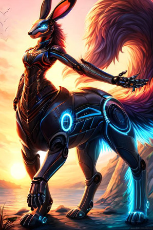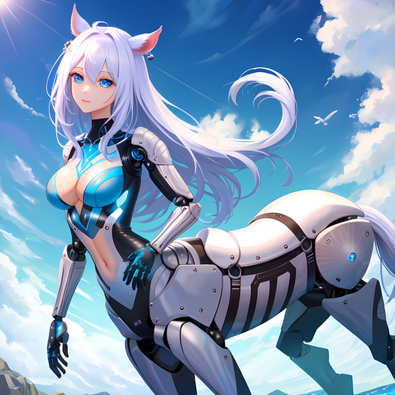 Prompt: taur, centaur, 1girl, humanoid_robot, robot_joints, android, cyborg, solo, outdoors-, masterpiece, highres+, absurdres, 4K, 8K, 16K, hyper-detailed, deep eyes, stunning, intricate, sharp, smooth, realisticNegative Prompt: mecha, gundam, nsfw, greyscale, loli, large_breasts, simple_background, cartoon, 3d, heterochromia, ugly, fat, obesity, chubby, deformed, deformity, ugliness, blurry, disfigured, poorly drawn face, mutation, mutated, extra_limb, extra limbs, bad hands, wrong hands, poorly drawn hands, messy drawing, text, cropped head, bad anatomy, two heads, child, kid, gross, mutilated, disgusting, horrible, old, conjoined, lowres, extra digit, fewer digit, worst quality, low quality, jpeg artifacts, watermark, username, artist name, censored, error, missing fingers, cropped, normal quality, signature, b&w, weird colors, bad art, poorly drawn