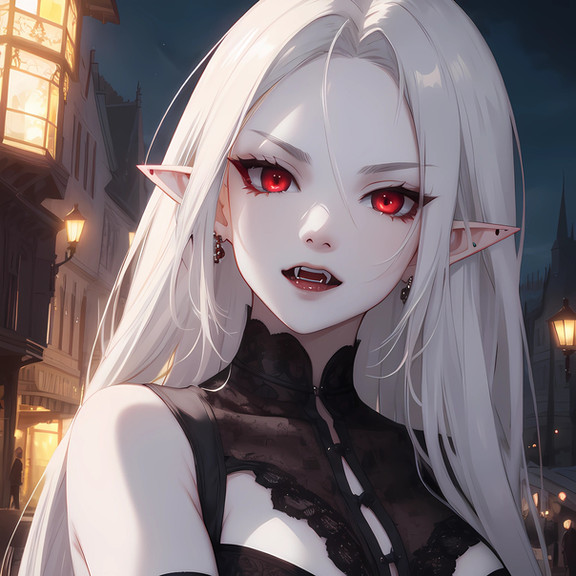#pointyears #vampire #vampiregirl #vampirelady #red_eyes #white_hair #generatedart #pointy_ears #ai_art #ai_generated #ai_generated_art #stablediffusion #promptincluded
