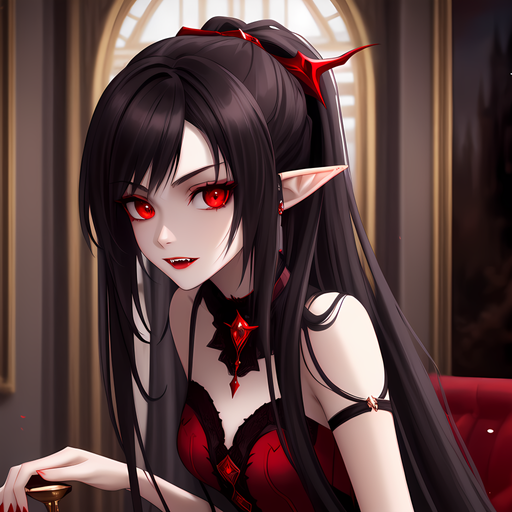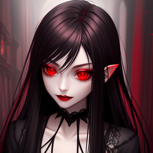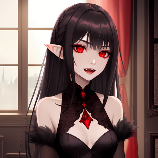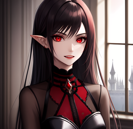 #pointyears #vampire #vampiregirl #vampirelady #red_eyes #generatedart #pointy_ears #ai_art #ai_generated #ai_generated_art #stablediffusion #promptincluded #blackhair #blackhairedgirl #black_hair #anythingv4