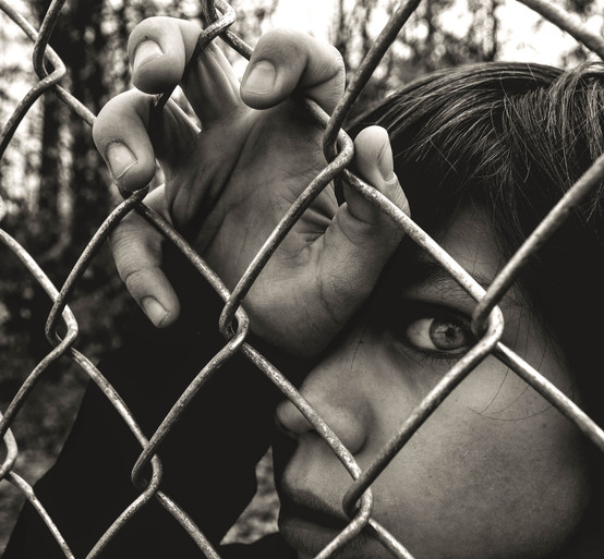 femme et enfant derrière un grillage ne présage rien de bon... fort et dérangeant.