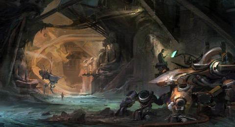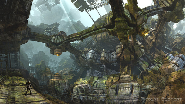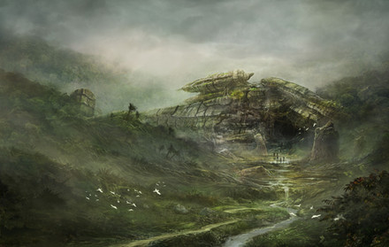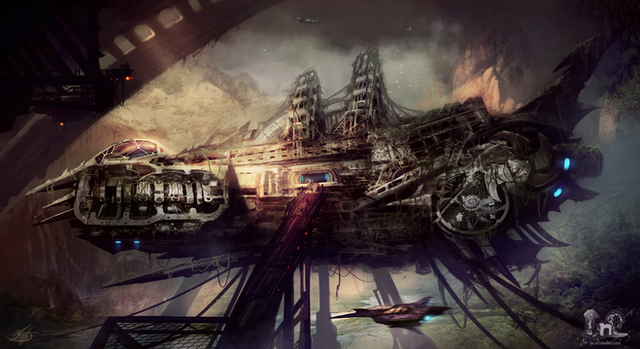 This piece was done astonishingly well. The figure standing in front was placed perfectly in relation to the crashed ship. It gives a great feel of proportion and momentum between the two pieces and adds more impact to the overall picture. It also demonstrates a wonderful use of three-dimensionality and perspective that livens the picture and makes the ship seem even larger in comparison to the human. It was also clever of you to add the stone blocks under the ship to further exemplify the fact that it crashed into the stone block floor with much ferocity. This brings me to the more natural part of the piece: the ruins and the water. The background and surroundings you chose have a perfect effect of gargantuan carvings and epic monoliths designed by some lost civilization that had once lived and breathed among the massive stone walls. The water coming down on top of the ship is first of all done very realistically and looks completely natural, but it also adds to the feel of the ruins and the ancientness. It takes the mind on a journey of what happened to bring us to this moment, this scene, and many a story could be created from it. Finally, the color scheme. Color is very important in art as it can convey many different feelings for one thing. You could have chosen warm earth tones or mossy greens, but the bluish-greenish grey you have chosen works excellently for this scene and interacts with the environment quite nicely. It again gives the desolate ruined sense of foggy mystery shrouding the picture. It also works well with the lighting you used on the ship, accentuating the bit of apparent color on the underside. Overall, I think this was very well done. Congratulations on making it to featured!