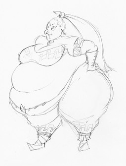 There's just something appealing about putting a giant blunt weapon in a chubby warrior-chick's hands ... who knows, it could possibly be subconscious phallic symbols, but it doesn't seem like that to me when i do that, as so it doesn't seem like that was the drive for this piece either. It just looks cool!