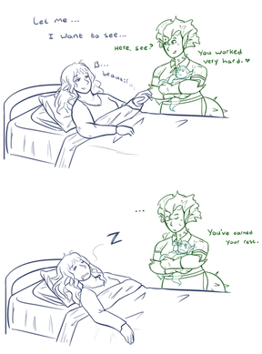 More of Alarune (one of Sage's OCs, who will be in Wishway ). I drew this on a sticky note some time ago, but I liked it enough that I made it digital.She's not actually that small. Unless that's just a really big teacup?