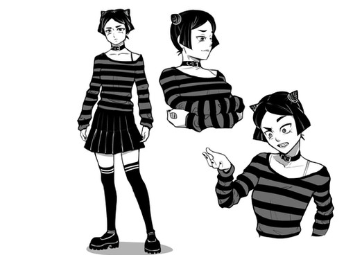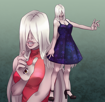 #demon #monster #multipleeyes #triboob #charactersheet #concept #demongirl #grayscale #horns #monstergirl #tail #underwear #multiplebreasts