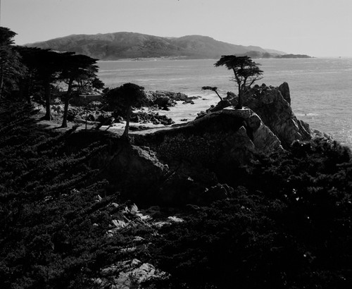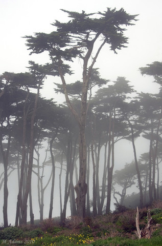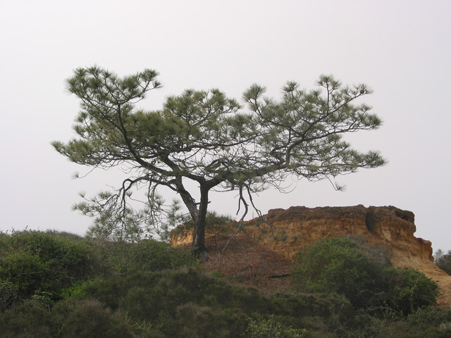 Shot on a cloudy day in Carmel-by-the-Sea at the beach on an old Canon 4MP digital cam set on automatic. Despite the worst that nature can throw at it, the pine bends, but does not break and continues to grow...PantherProwLs