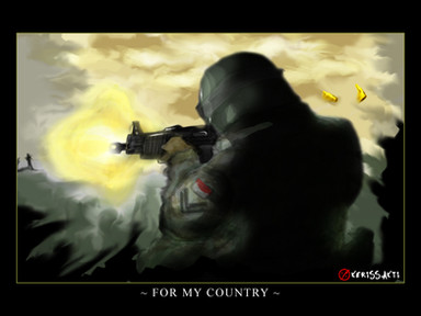 In this picture I used a variety of special brushes for photoshop. I used "Distressed", "Grunge and dirt", "Gravel and sand" and "Bullet holes" (Great tool I must add) brushes from