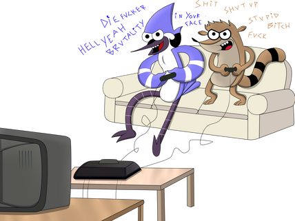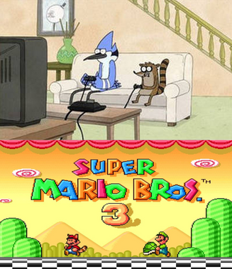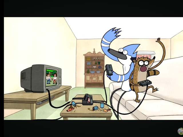 I just tried to do exactly the same mess as Mordecai and Rigby would do if they try to beat game. And of course I put a bunch of Regular Show scenografy on it xDTrate de hacer el mismo lio que Mordecai y Rigby hubieran hecho si trataran de ganar un juego y por supuesto puse un montón de escenografía del show ahí xD