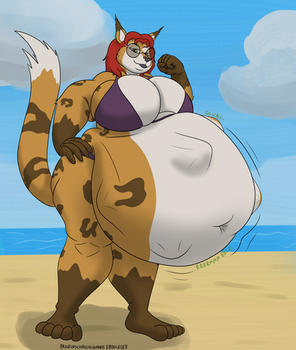 #beach #belly #bikini #breasts #button #fat #female #flexing #lynx #navel #ocean #riley #sand #sunglasses #musclegut #oshane #lynxuki #strongfat