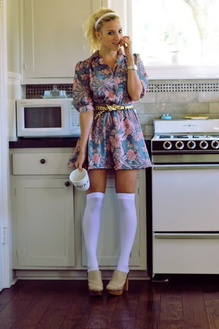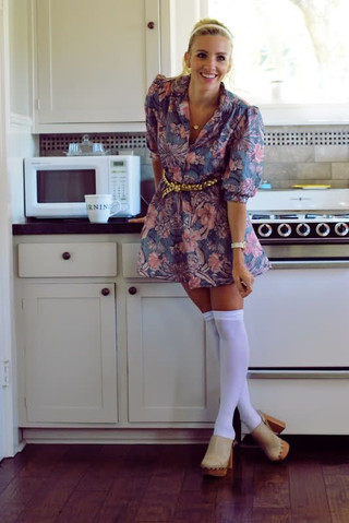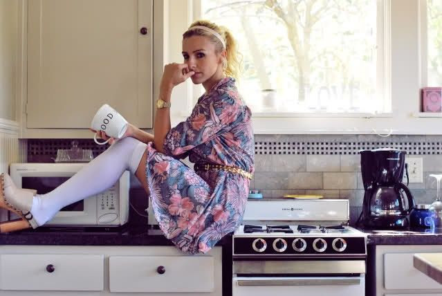 #blondegirl #clogs #coffee #fashion #kitchen #socks