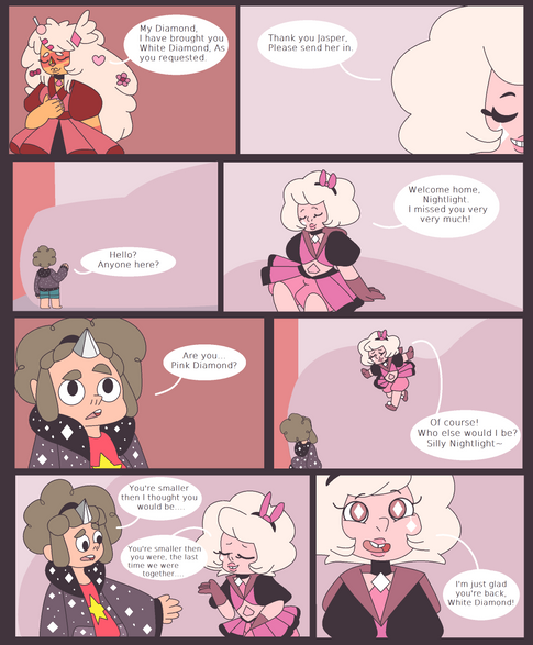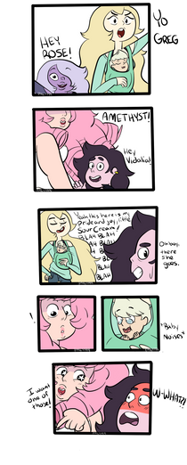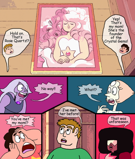 Oh, the relevance this comic has now... although it would here that the other's had already known. Makes me wonder what would have happened if Rose was open with her past, like she made her first appearance as"I am Rose Quartz, the former Pink Diamond!"