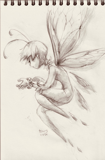 Potential creepiness aside this came out great! I love the soft crosshatching of the shading, I just hope that sweet fairy's curiosity doesn't nip them in the bud too soon