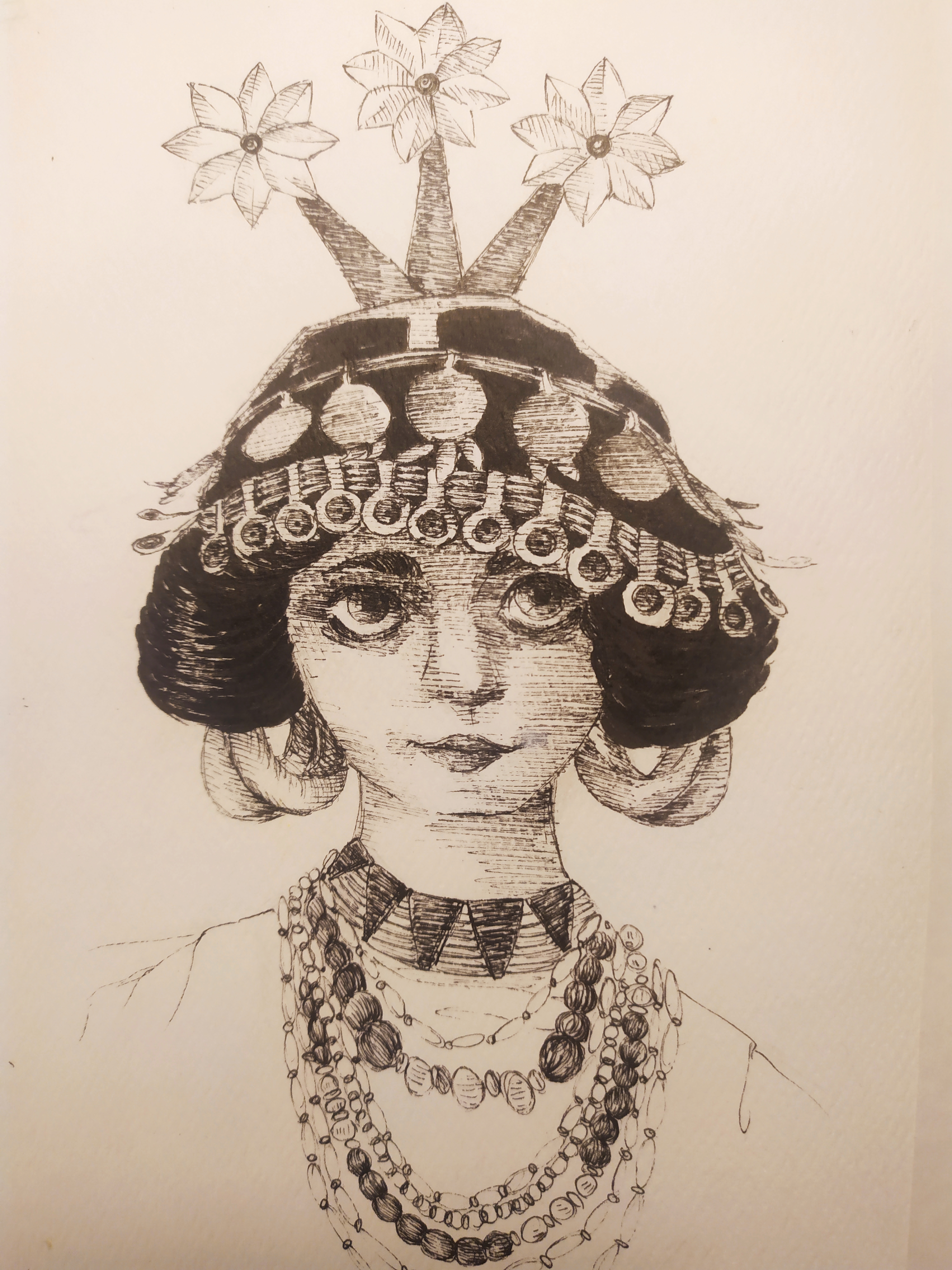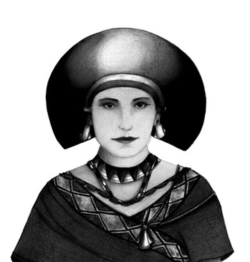 #drawing #feminism #headdress #history #illustration #original #pencil #period #portrait #queen #sketch #traditional #woman