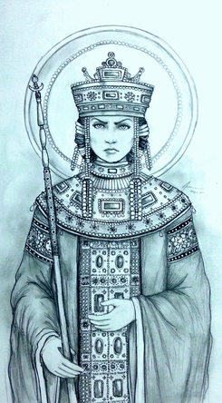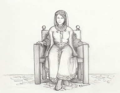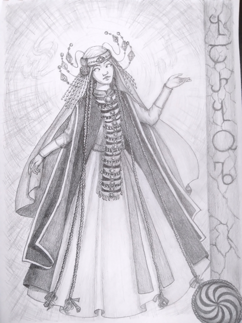 Graphite goodness of pencil today, and this is Tamar of Georgia. She was known as Tamar the Great and she reigned as the Queen of Georgia from 1184 to 1213, presiding over the apex of the Georgian Golden Age. A member of the Bagrationi dynasty, her position as the first woman to rule Georgia in her own right was emphasized by the title mepe ("king"), afforded to Tamar in the medieval Georgian sources : DI really like drawing traditional dresses, for their designs and intricacy