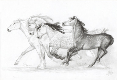 This is my submission for a contest if I am really lame and don't finish inking it on time. I just had to something with the word 'horse', so there you go; you get three of them!Related content