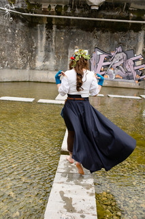 We shooted in some kind of abandoned industry-turned urban hangout ground area and it was so cool!! And one of the best things were that on the way there there was wild Camomille all over the place! The perfect "prop" just presented itseld and I'm soo greatful for it!!
