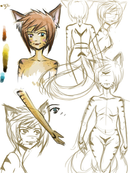 My style is really messy, it involves a lot of sketching, and half the time, I'm too lazy to finish anything.