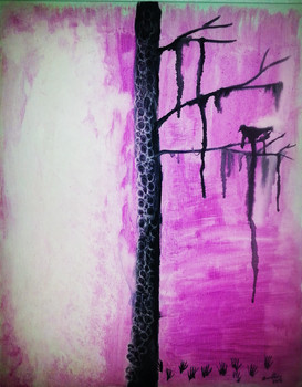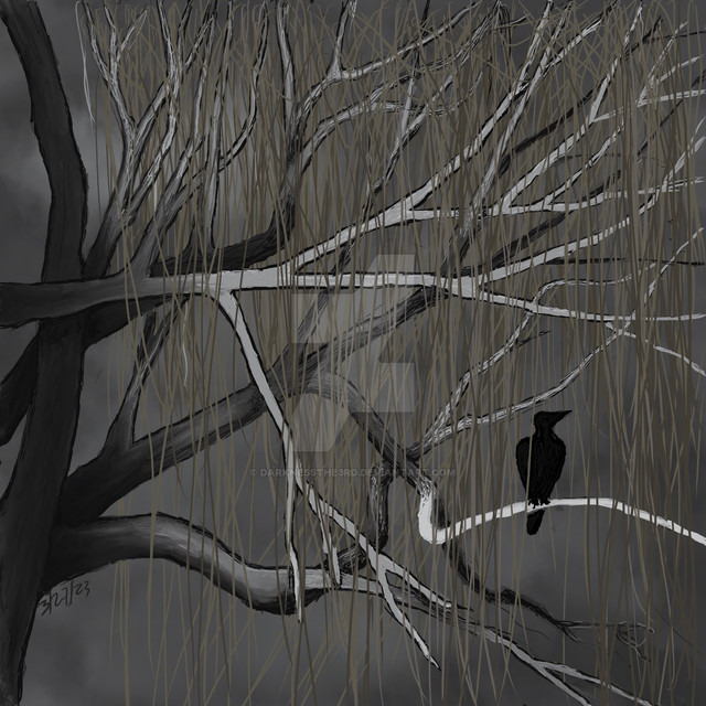 I love the use of colors here and how you've only colored the hair and her skin (fair skin with red hair is a combination I have a particular weakness to, haha). I also like the tree, very detailed and ominous.