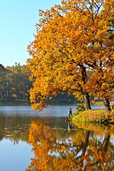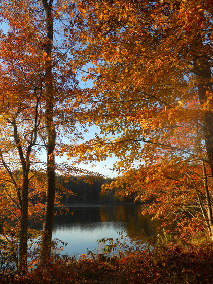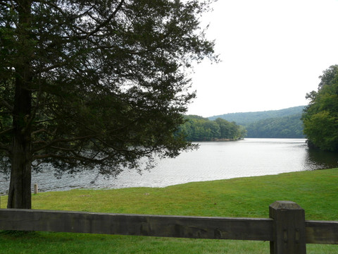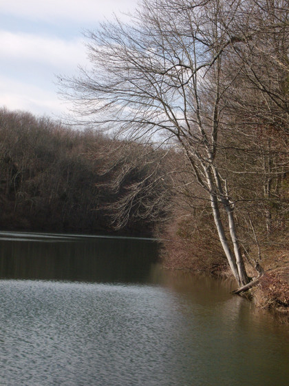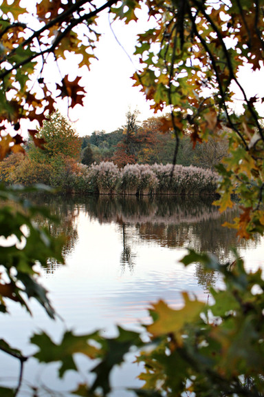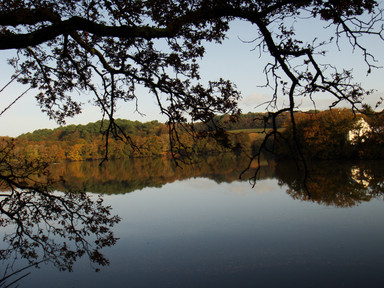 Mist hangs in after the autumn rain at Winkworth arboretum