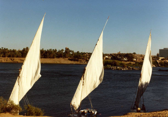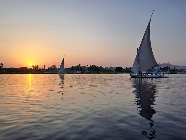 Two Feluccas sailing along the Nile at Luxor, Egypt.Related content