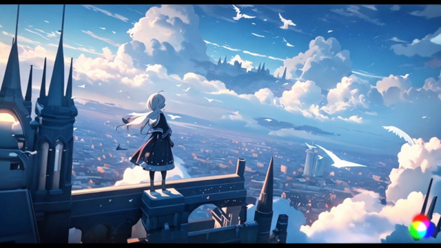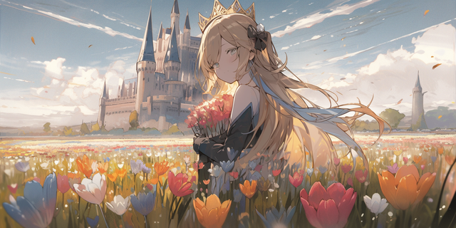 #ai #castle #flowers #girl #scenery