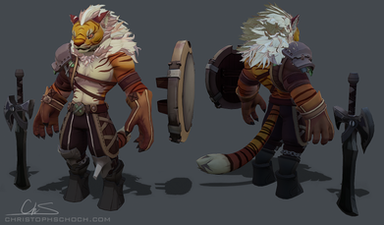 I'm guessing you used Samwise's Pandaran Shodo Pan concept art as the main reference and his Pandaren Brewmaster concept art for the reference of the hat. Probably would have been a good idea to mention that. I also do low poly modelling and texturing for WarCraft 3. That being said, I think that it is on par with the quality of the better texture artists who make models and textures for WarCraft 3. However, I think the brown part of the overshirt could have been blended better and using 512x512 wouldn't hurt either. But, it looks like the concept so that's good.