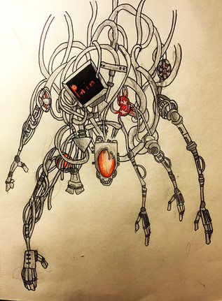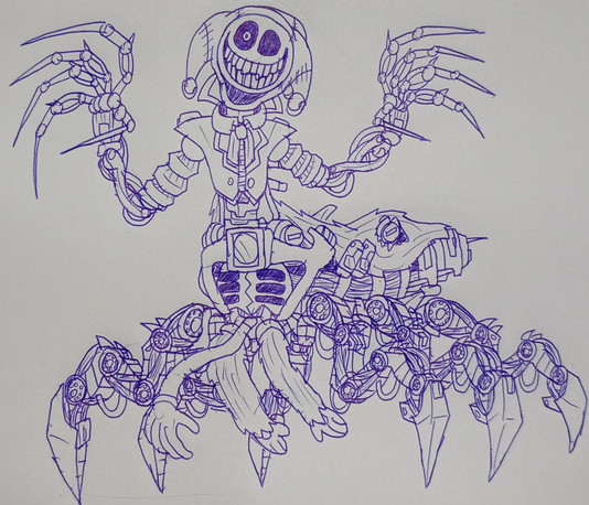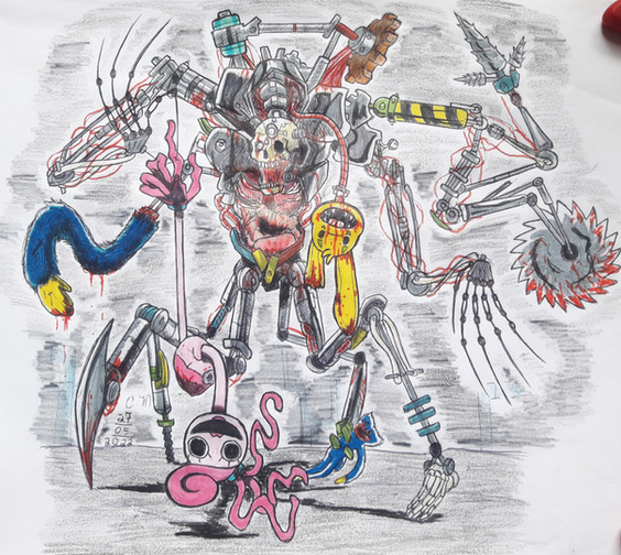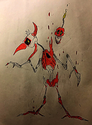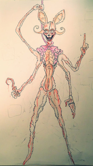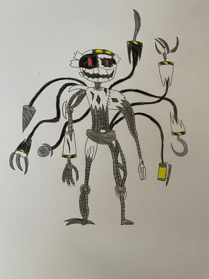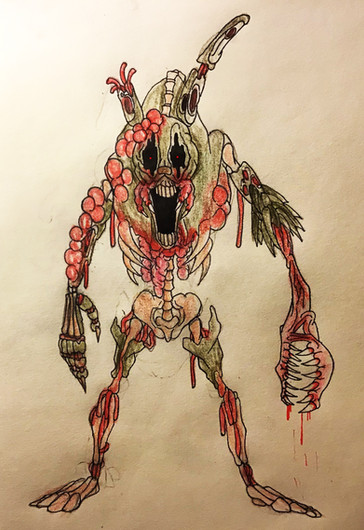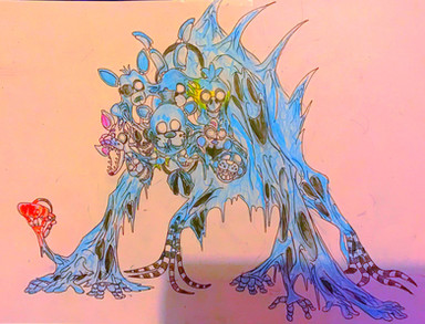 Jeepers, didn't expect to wake to this but good job. I like the addition of the hook and how the second endoskeleton looks and or may be a head, and I like how it seems the former host's teeth have replaced the former costume's teeth giving it a eerily human grin. A true mangled horror indeed, certainly able to put other so called "horror attractions" in their place.