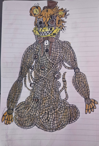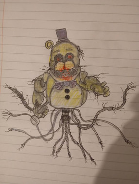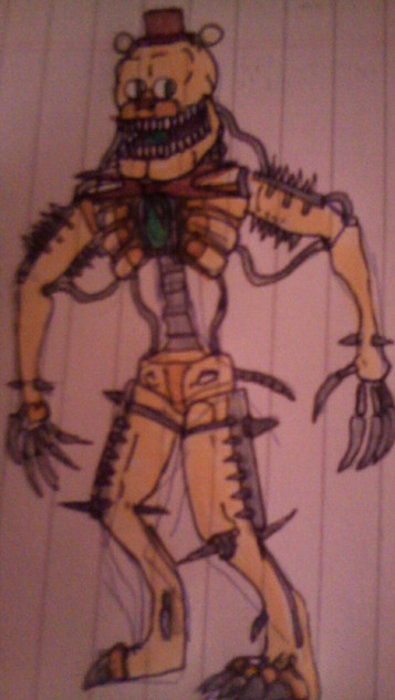 Also requested by ! This is a what-if concept where Molten Freddy finds Fredbear more or less. I didn’t just want it to be just Molten Freddy using his body as a host, and decided to make it more of a mutual symbiosis; Fredbear uses Molten Freddy’s wires and sharp bits to make a new body for himself, and Molten Freddy takes refuge inside him to stay safe from Henry. Hope you enjoy!Related content