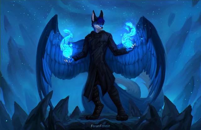 #angel #bluefire #fantasycreature #spirit #wings #wolf #wolfcharacter #yokai #wolfoc