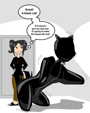 HA HA HA! Awesome story behind the drawing I wonder how long phantom's flotation suit was set to bind her there