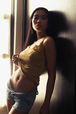 There's just something very spellbinding here; maybe it's the naturally charming model with healthy physique and relaxed expression (her soulful gaze contributes a great deal here) or unique layout of elements beside her (the thick curtains and that unique oil painting). Anyway it really grabs attention and doesn't let go.